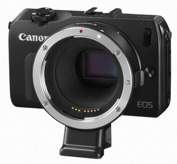 Solo os voy a poner esta imagen adicional. Es la pequeña EOS-M con el adaptador EF-EF-S puesto. Así os podréis hacer una idea del tamaño de la cámara tomando como referencoa el circulo de la montura del objetivo EF o el EF-S, que naturalmente es el mismo.