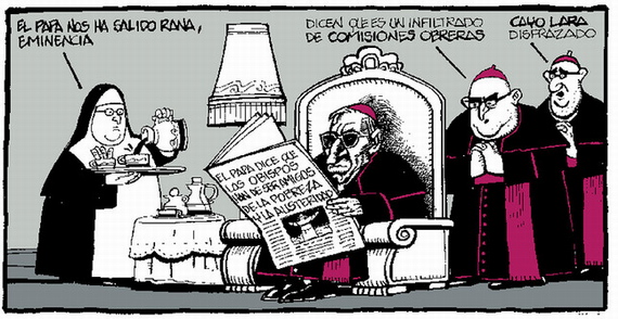 Si ser muy «pro-clerical», mas alla de lo que nos toco a lo de «aquellas generaciones» por obligacion, vamos, catolico pero no practicante (no hare el chiste de que me dan miedo las inyecciones), Paco 1 me esta dando -en primera instancia- bastante buen rollo. Parece que esta levantando las alfombras. Un cura comunista?… 😀
