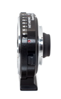 - El Speed Booster 0,58x reduce el factor de recorte de la Blackmagic Pocket Cinema desde 2.88x a 1.75x, con un máximo de abertura esta vez de F0,74.
