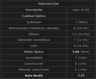 El análisis es como siempre muy completo, tocando todos los puntos esenciales: nitidez, contraste, distorsión, viñeteo, aberraciones cromáticas, todos ellos temas de importantes en el resultado y la sensación de la imagen final..