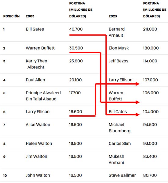 Lo que nos dice la lista de millonarios de 2003 comparada con la de 2023 sobre todo lo que ha cambiado (y lo que no) en el mundo