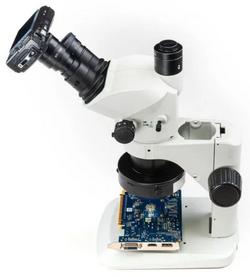 Jo, en la foto que pones muestran un esteromicroscopio triocular y sujetan la cámara a un ocular con un adaptador, que cosas más raras hace la gente.